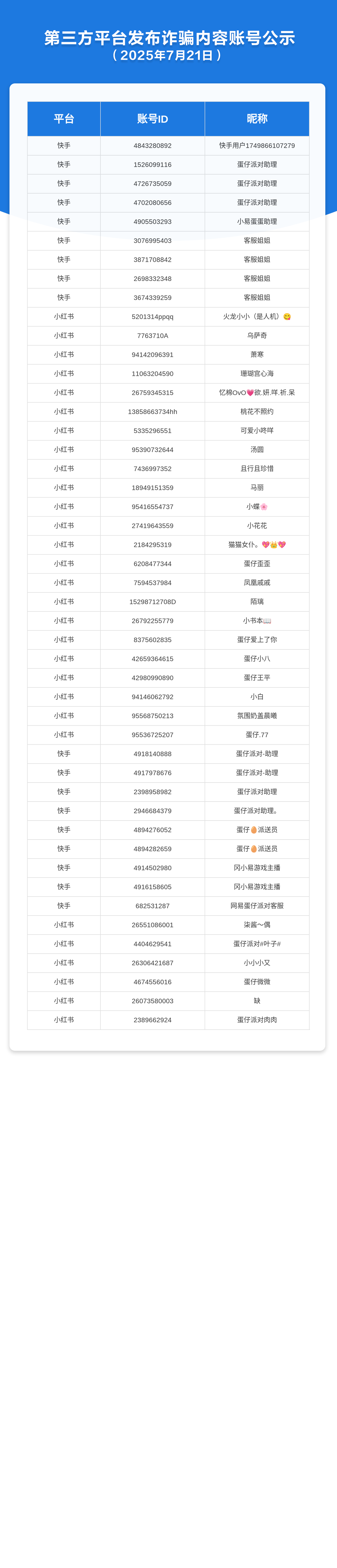 第三方平台发布诈骗内容账号公示(2025年7月21日)