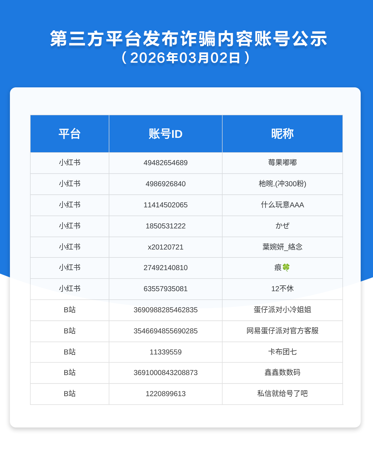 第三方平台发布诈骗内容账号公示(2026年3月2日)