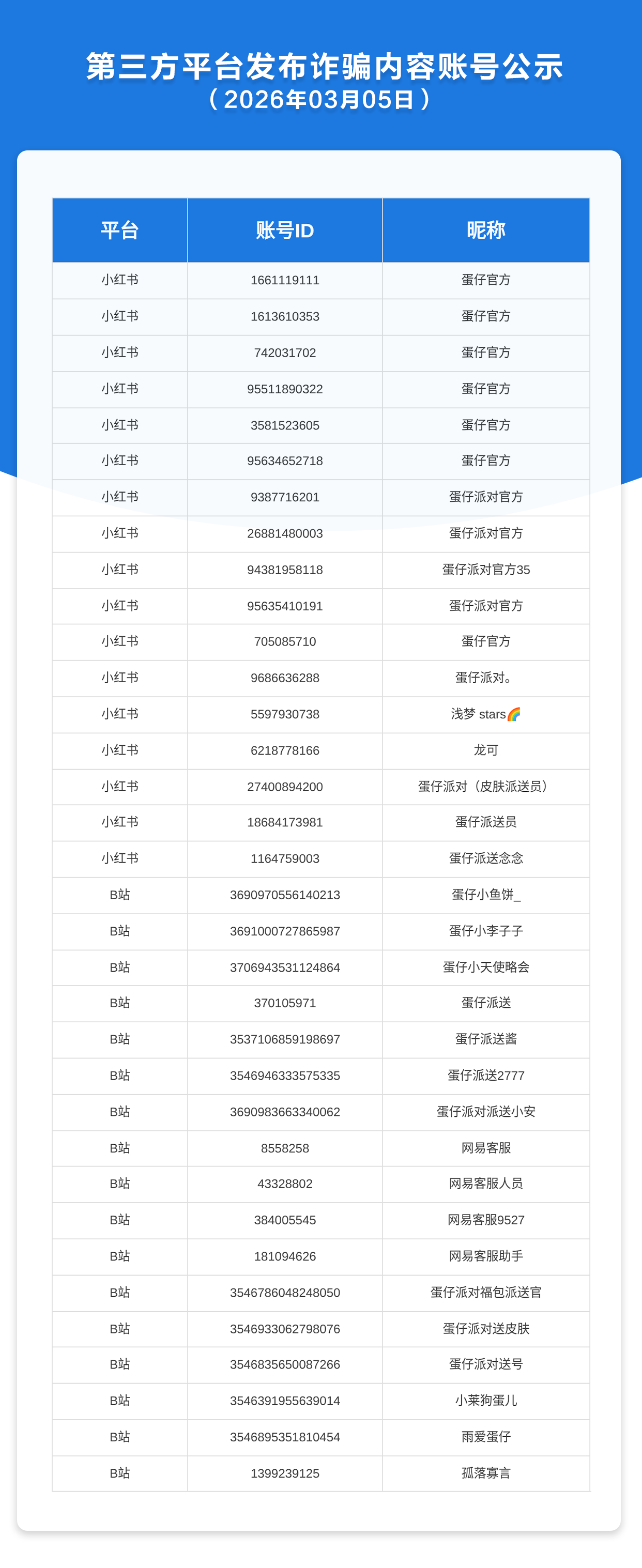 第三方平台发布诈骗内容账号公示(2026年3月5日)